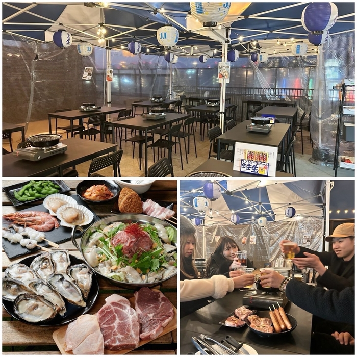 天満橋を一望しながら屋上で浜焼きを堪能!赤穂産サムライオイスターや、伊勢産おいせ牛も楽しめる新スタイルの浜焼きです。こだわりの日本酒や、プレミアムウイスキー、焼酎など日本全国100種類のお酒も取り揃えています。