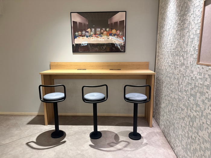 座席数を増やしより多くのお客さまにご利用いただけるよう利便性を高め、遊び心あるナマケモール(※1)の絵画をイートインコーナー各所装飾物として展開。より食物販フロアにマッチした空間に生まれ変わります。