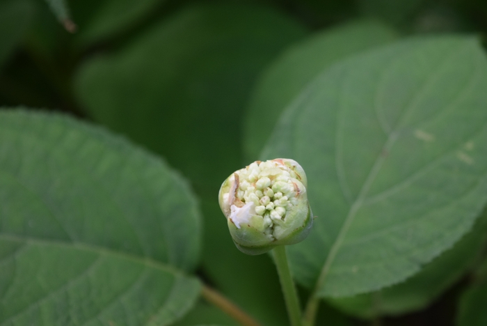タマアジサイは球形のつぼみが特徴の系統で、和名と学名の由来にもなっています。
