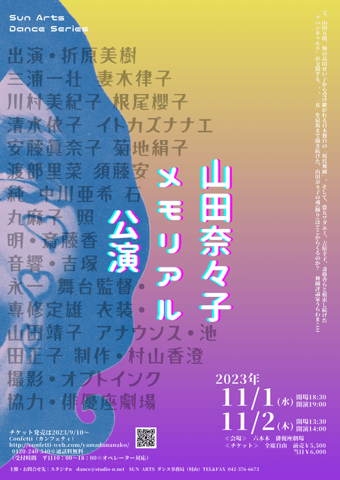 本舞踊公演は、山田奈々子の一周忌に合わせ「偲ぶ会」の代わりとして企画されました。