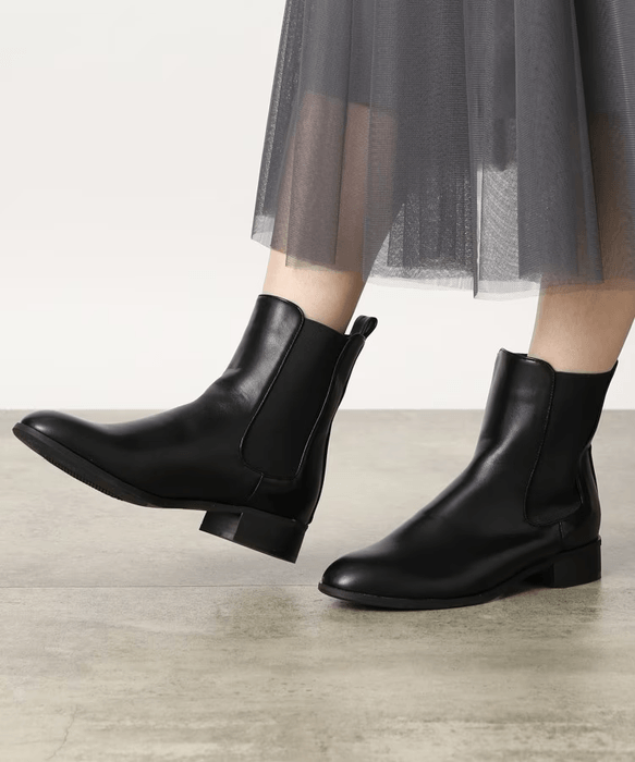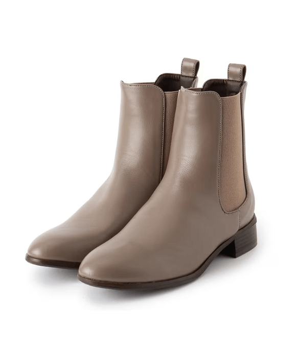 すっきりとしたトゥデザインで、カジュアルさの中に上品な印象を感じさせるサイドゴアブーツは、大人っぽく仕上げたグレージュと使いやすいベーシックなブラックの2色を展開。