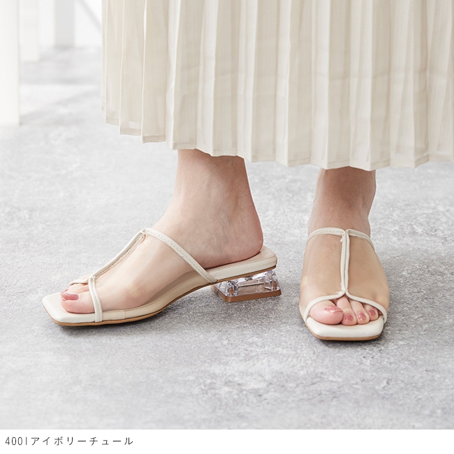 チュール×クリアヒールの夏に映えるスライドサンダル