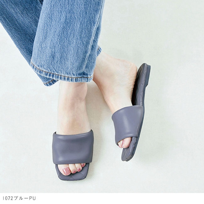 隠れたデザインが目を引く。キルティングスライドサンダル