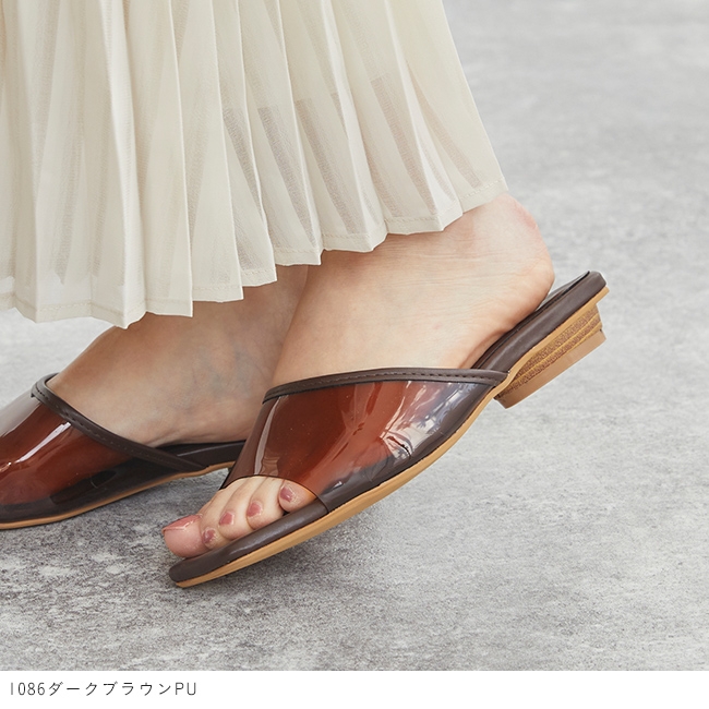 クリア素材で涼しげな足元に。パイピングクリア スライドサンダル