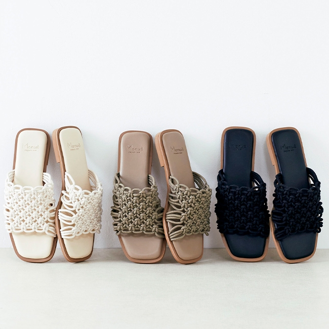 商品名 :menue (メヌエ) スクエアトゥ 編み込み サンダル