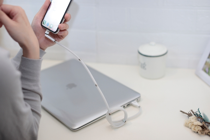 強力なマグネットにより、ケーブルが片手で簡単に接続できます。