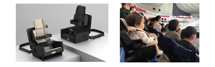 「IKOU(イコウ)ポータブルチェア」は、家の中でも外出先でも利用できる折りたたみ式のキッズチェアです。ボックス状に収納されており、それぞれの施設のイスの座面に簡単に取り付けることができます。体幹が弱い乳幼児でも安定して長時間座ることのできるシート設計を採用。障がいの有無に関わらず、生後7か月から3歳児ごろまでの子どもが利用可能です。