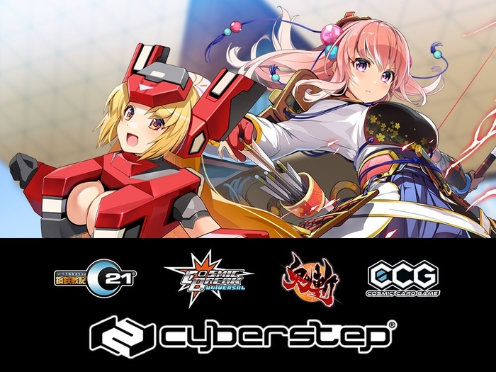 出展ブース内では、新作対戦カードゲーム『Cosmic Card Game(コズミックカードゲーム)』をはじめ、サイバーステップが開発・運営を行うPCゲーム『鋼鉄戦記C21』や『鬼斬』、『CosmicBreak Universal』のグッズ販売を行います。