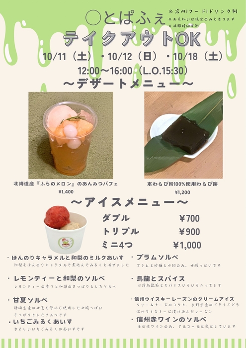 「◯とぱふえ」では、季節ごとにテーマを設定し、その時期ならではの素材を使用したメニューを展開しています。