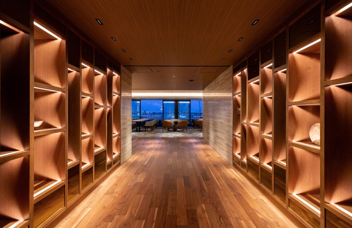 お客さまをお迎えするのは、2階フロントへと続く象徴的で優雅ならせん階段。大きな窓から臨む横浜の海の景色が贅沢な旅の始まりを予感させます。客室までの旅路となる館内各所は、当ホテルのためにつくられた数々のアート作品で彩られ、客室の家具や照明などのインテリアが旅心を誘います。
