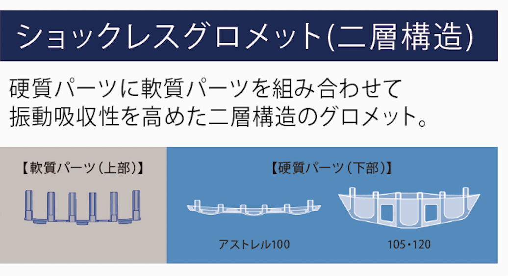 ■ 大きくたわんで、大きく弾く新グロメット設計