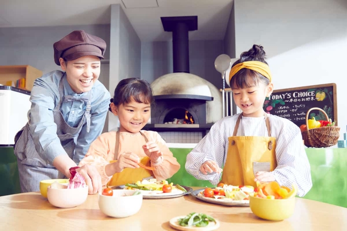 頼れる両親から離れ、初対面の子どもたちや、ホテルスタッフと過ごす非日常の体験は、多様性を体感し、1人でできたという自信につながります。リゾナーレ那須では、石窯ピッツアづくりやキッズスタジオなど、子どもが集中して時間をすごせるアクティビティなどを用意。同時に、大人もリフレッシュできるよう、BOOK&CAFEや託児付ダイニングレストランなど、寛げる空間やサービスを提供しています。