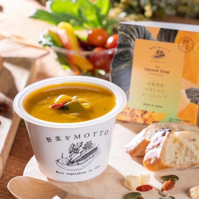 モンマルシェ株式会社が運営する国産野菜フードブランド【野菜をMOTTO】は、人気シリーズ レンジカップスープの新フレーバー「北海道産皮つきかぼちゃのほっこりスープ」を5月1日に発売いたします。