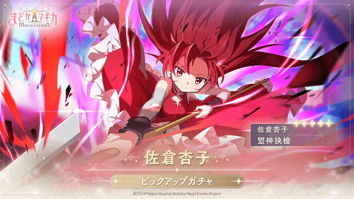 株式会社アニプレックス(本社:東京都千代田区 代表取締役 岩上敦宏 以下アニプレックス)は、新作アプリゲーム『魔法少女まどか☆マギカ Magia Exedra』(Magia Exedra:マギアエクセドラ)において、4月4日(金)12:00より、新たな★5キオク [盟神抉槍]佐倉杏子(CV 野中藍)が登場するピックアップガチャの開催が決定したことをお知らせいたします。