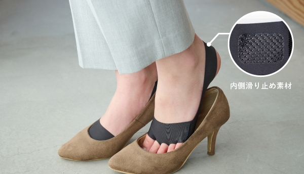 かかとの内側部分は滑り止め素材を使い、サポーターが脱げにくくなっています。