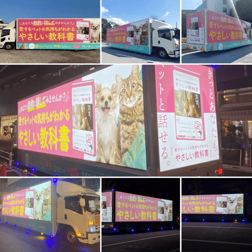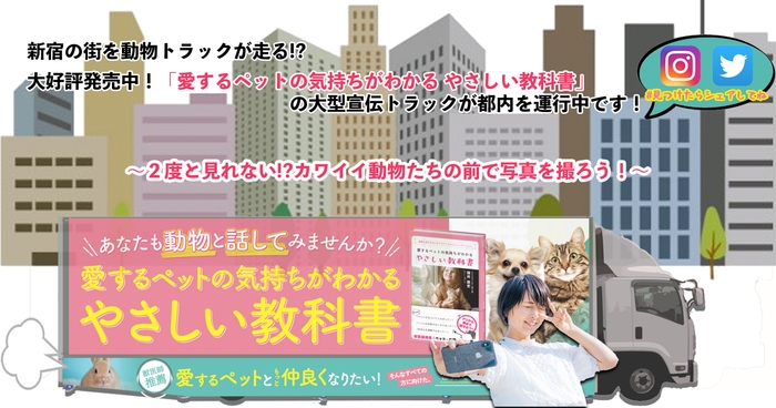 新宿の街を動物トラックが走る!? 大好評発売中!「愛するペットの気持ちがわかる やさしい教科書」 の大型宣伝トラックが都内を運行中です!