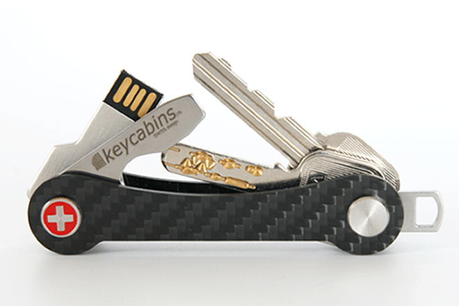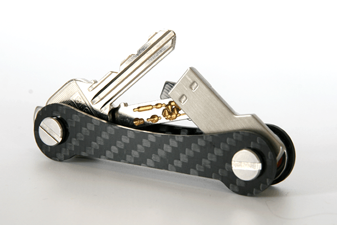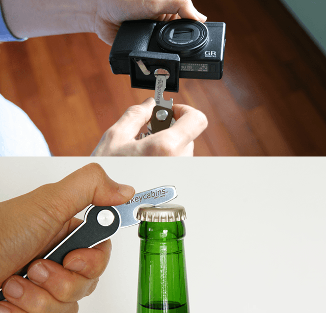 注目すべきは素材。カーボン、アルミニウム、そして、天然木タイプはフローリングになれなかった床材から作られています。(スノーボードとLPレコードから作られたタイプはすでに完売)優れたデザイン性がヨーロッパで高く評価されデザイン賞を受賞。鍵をスイスアーミーナイフのようにスタッキングして収納するので、ジャラジャラしている鍵がスマートな見た目に。また、鍵同士がぶつからなくなるので耳障りなチャリチャリ音から解放されます。