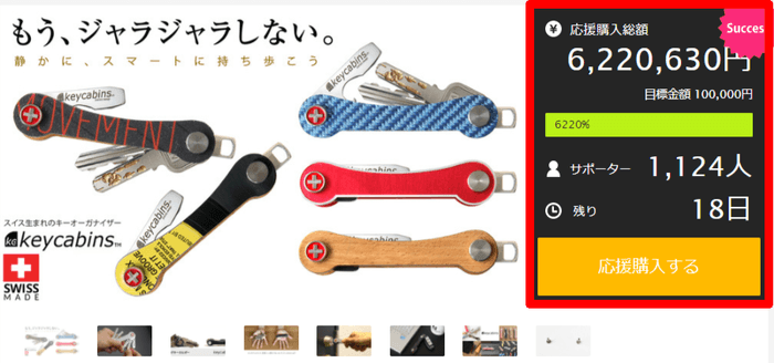 クラウドファンディング目標金額の6200%に到達!もう、ジャラジャラしない。鍵をスマートにまとめるキーケース