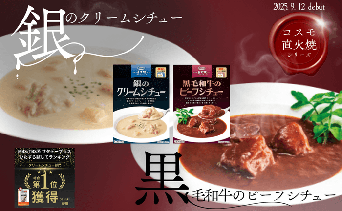 食品製造・販売を手掛けるコスモ食品株式会社(本社:東京都大田区)は、MBS/TBS系『サタデープラス』の大人気コーナー「ひたすら試してランキング」の「クリームシチュー」部門で総合第1位を獲得した当社の人気商品【コスモ直火焼 銀のクリームシチュー・ルー】を使用したレトルト新商品「コスモ直火焼 銀のクリームシチュー(レトルト)」を2025年9月12日に発売しました。
