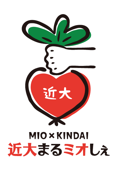 「近大まるミオしぇ」を実施するにあたり、近畿大学農学部の学生と共に企画デザインを行っております。以下のロゴ、ポスター、商品説明等についても、学生がデザイン案を考え展開をしてまいります。