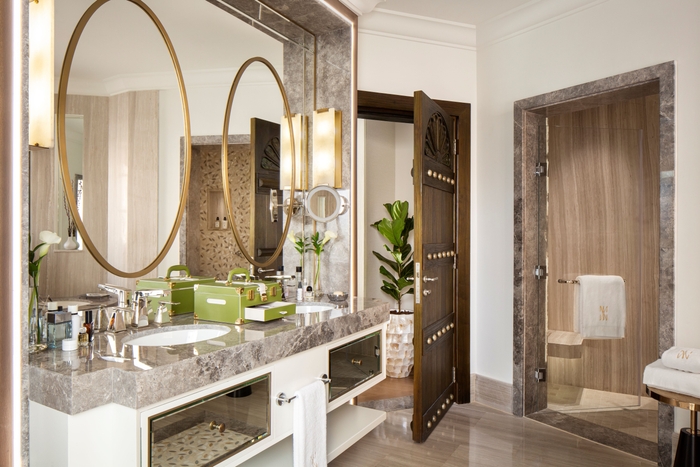 お客様はまず、マディナ・ジュメイラの風光明媚な水路を伝統的な木造のアブラボートで巡る絵に描かれたような美しい旅を体験し、専用のレセプション・エリアへ到着します。そこでリフレッシュメントを楽しんでから、専属のバトラーがご宿泊のヴィラへご案内し、堂々たる輝きを放つ自分だけの空間で究極のエスケープ体験がはじまります。