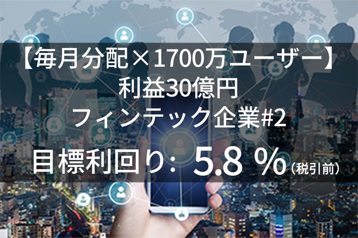 新商品 『【毎月分配×1700万ユーザー】利益30億円フィンテック企業#2』を公開