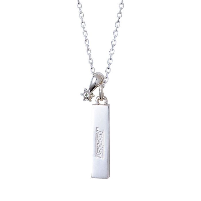 シンプルなバータイプのトップにはJupiterの世界観を取り込み、裏面にはユニット名を刻印しました。ユニットカラーのストーンチャームがワンポイントのデザインです。