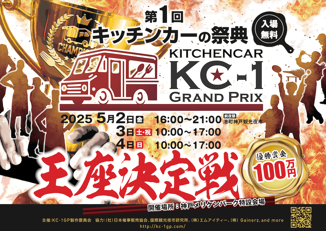キッチンカーの総合力No.1を決定する「KC-1 GRANDPRX」に関西を代表する30台のキッチンカーが集結!「安心安全」「FOODクォリティ」「お客様満足度」の3つのポイントで競い合うグランプリ。