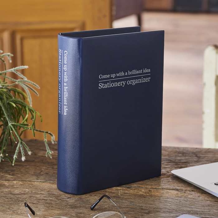 クラウドファンディングサイトMakuakeにて、目標金額311%達成し発売に至った知性的なネイビーのブック型の収納アイテムです。仕切りやポケットが多いのであらゆる文具に対応し、程よい重みのおかげで取り出しやすさも◎。ブック型は閉じればよりすっきり整った環境が演出できます。また持ち運びも容易に。テレワークされる方には特に喜ばれる“今”欲しいアイテムです。