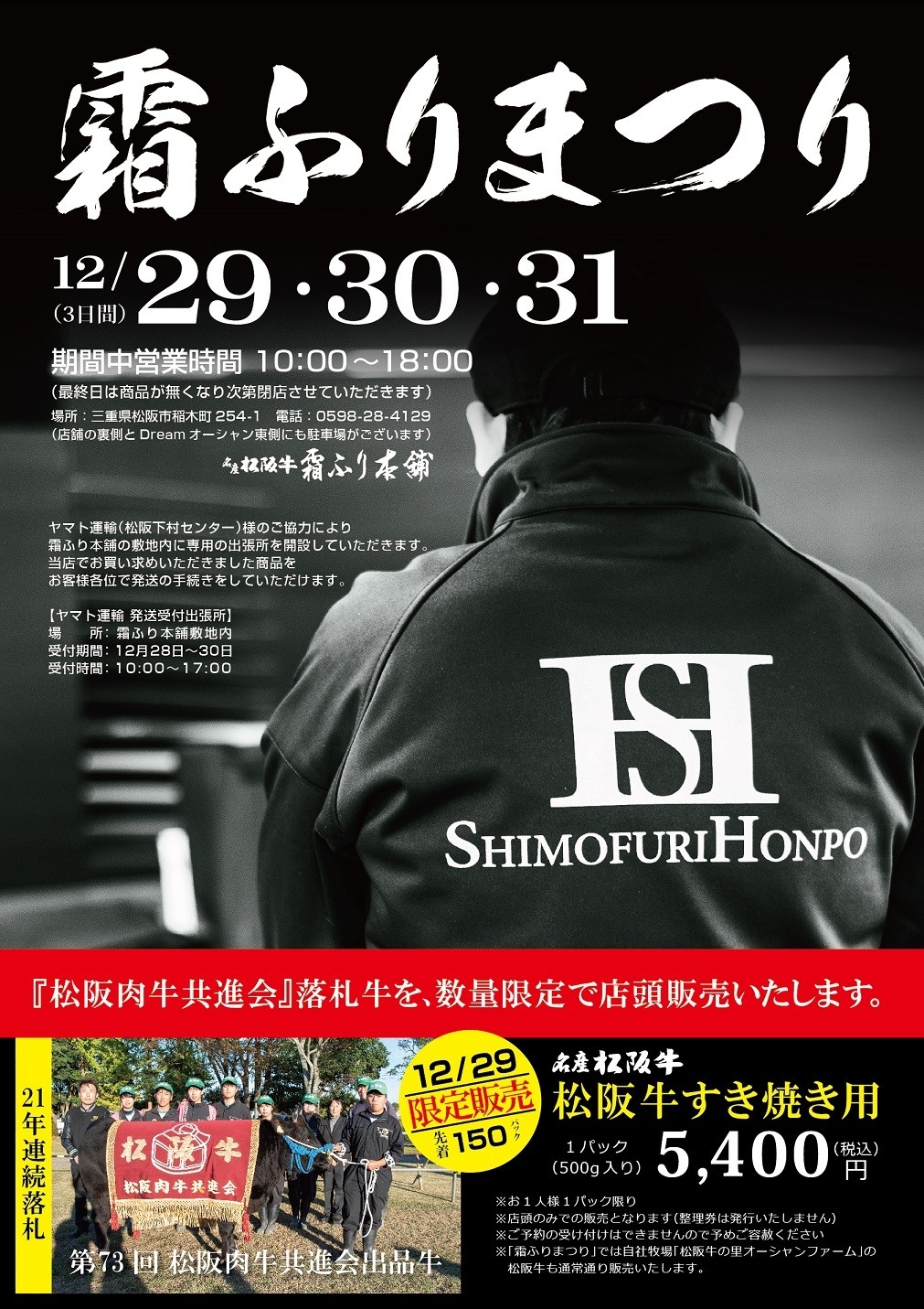※「霜ふりまつり」では自社牧場「松阪牛の里オーシャンファーム」の松阪牛も通常通り販売いたします。