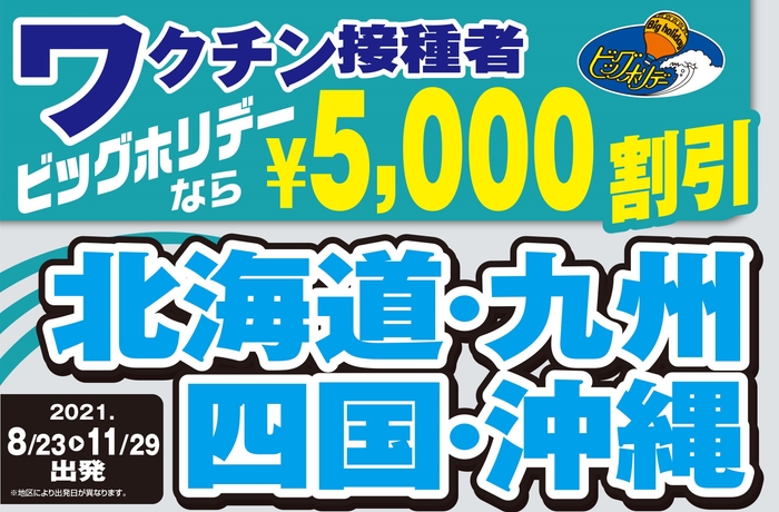 ビッグホリデー株式会社(本社:東京都文京区、代表取締役社長:岩崎 安利)は新型コロナウイルス感染症ワクチン接種促進の一助となるよう、ワクチン接種者を対象に1人あたり旅行代金より5,000円割引のサービスを受けることができる期間限定ツアーを2021年7月21日(水)より販売開始します。