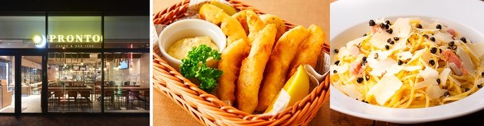 「昼はカフェ、夜はサカバ。」という「二面性」をキーワードに、働く人がいつでも立ち寄れる、使い勝手の良い空間を一日中ご用意しています。仕事前や休憩時間に立ち寄れて、人々が集うコミュニティともいえるカフェ空間として。また、仕事終わりに仲間と気軽に集え、会話が弾むキッサカバ空間として。プロントならではの嗜む時間を、カフェとサカバでお楽しみ下さい。