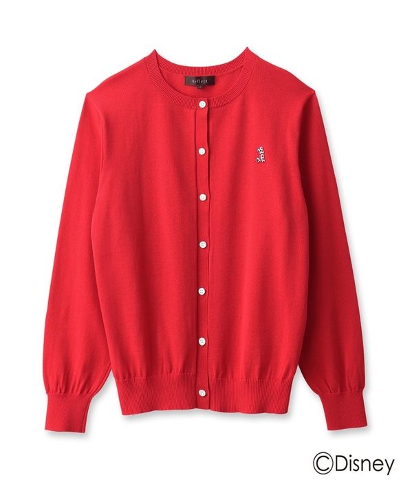 クルーネックのカーディガンにドット柄モチーフの「ミッキーマウス」で大人の遊び心を演出。フロントには厚みのあるシェルボタンを使用し、大人のスタンダードアイテムの雰囲気を醸し出します。