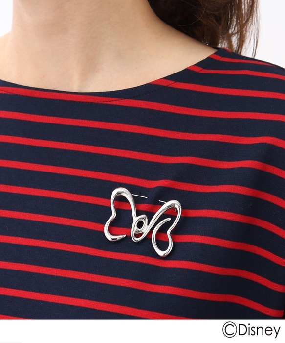 「ミニーマウス」のリボンモチーフを、手書き風のラインで表現したブローチです。丸みのあるフォルムで程よい華やかさがあるので、お洋服やバッグに合わせてお楽しみいただけます。