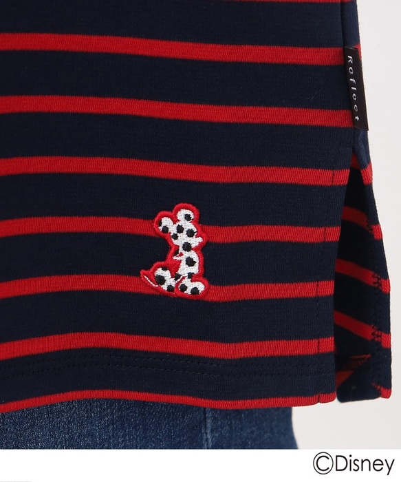 シンプルなデザインで着回し力のあるボーダーカットソー。オシャレなドット柄と「ミッキーマウス」の組み合わせが可愛く品のある刺繍アップリケがポイント。