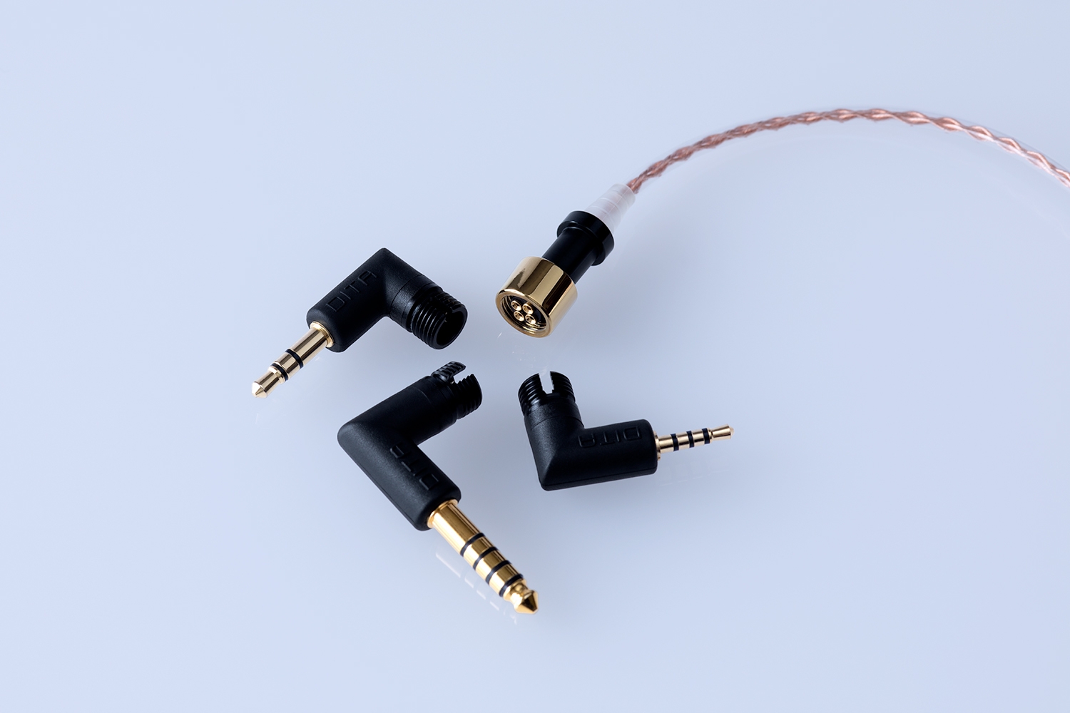 イヤホン側端子はMMCXリケーブルに対応しており、プレーヤー側端子は環境に応じて3.5mm3極/2.5mm4極/4.4mm5極とプラグを付け替えることができる「AWESOMEプラグ」になっています。