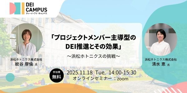 人事・労務向け事例セミナー 「プロジェクトメンバー主導型のDEI推進とその効果~ 浜松ホトニクスの挑戦」 11月18日(火)開催(参加無料)
