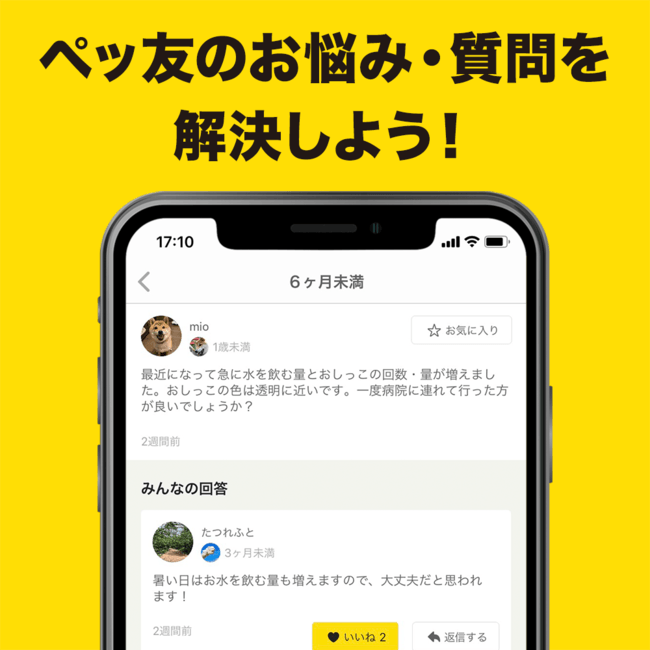 - 「しつもん」でペッ友のお悩み・質問を回答。ペッ友を助けてあげよう。