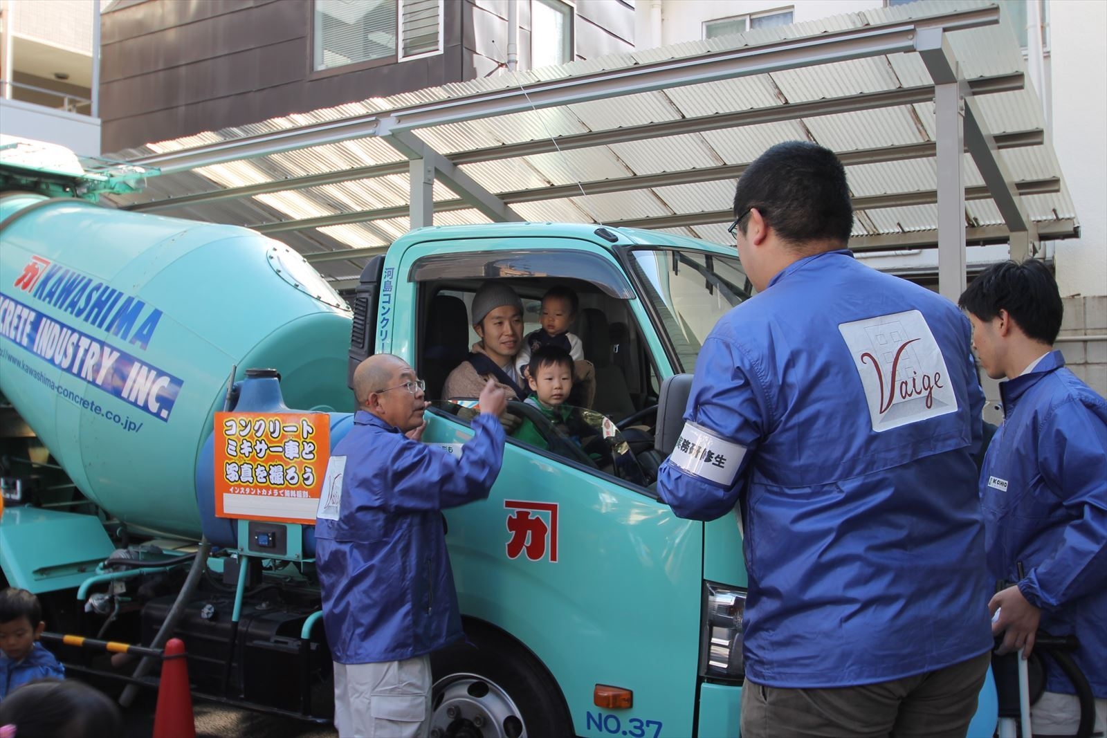 生コンにさわる&コンクリートミキサー車と写真撮影など楽しい体験をプレゼント