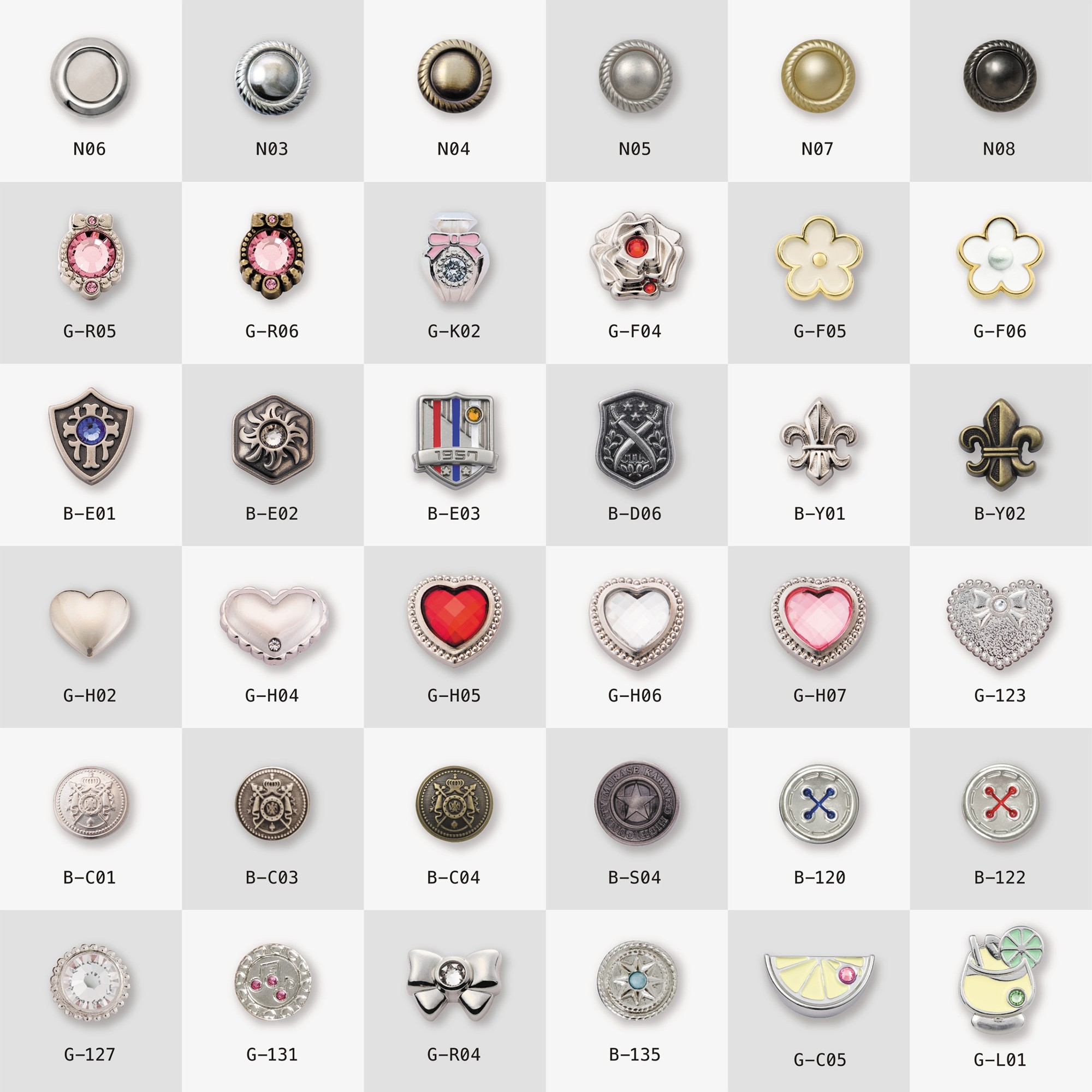 かぶせの鋲を36種類の中から無料でお選びいただけます。