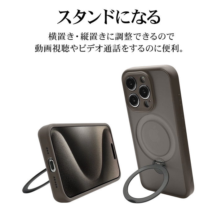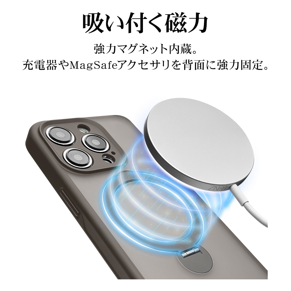 MagSafe対応リング付きのハイブリッド背面ケースです。