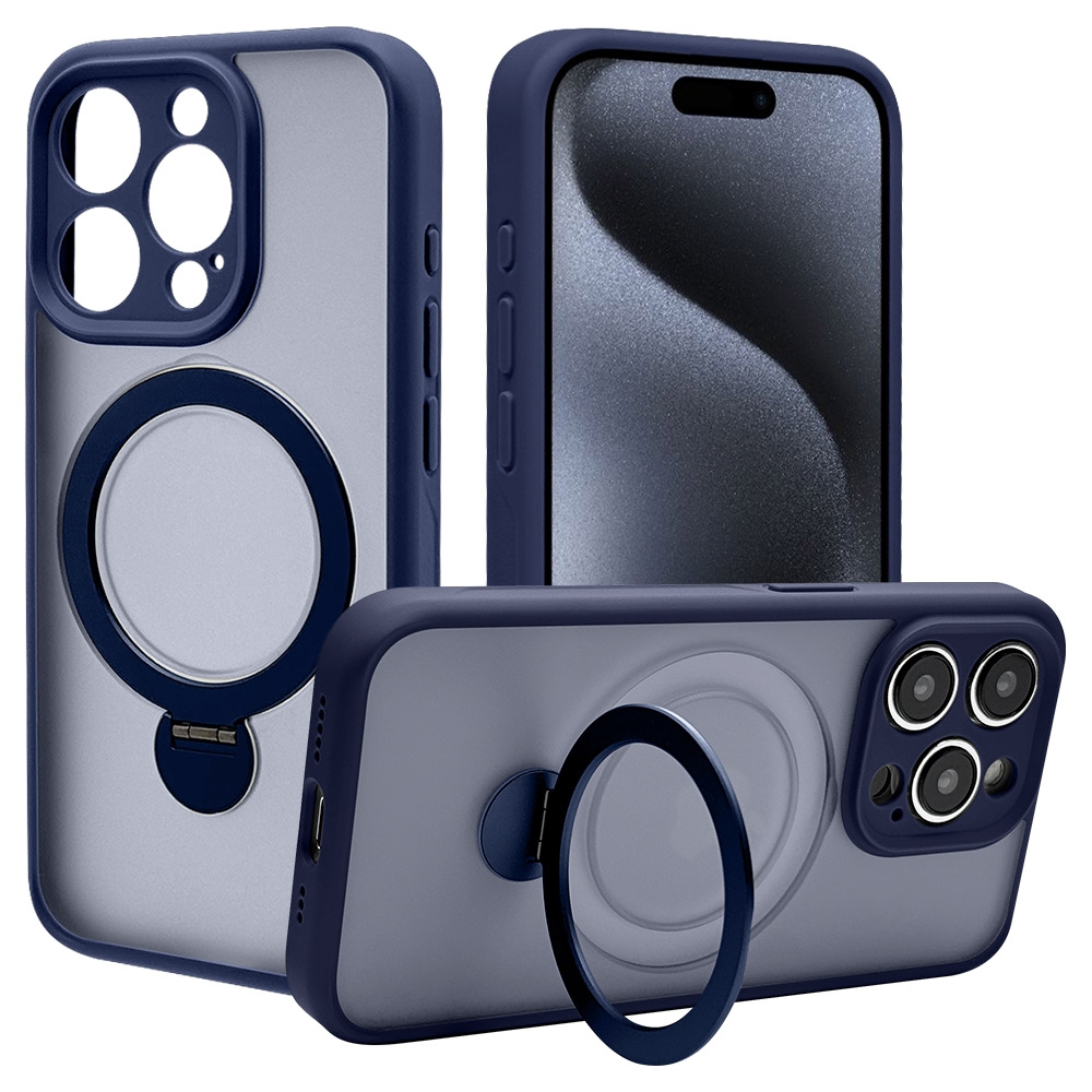 指が通せて操作安心、120度開閉&360度回転でお好みの角度に調整可能な、MagSafe対応リング付き。