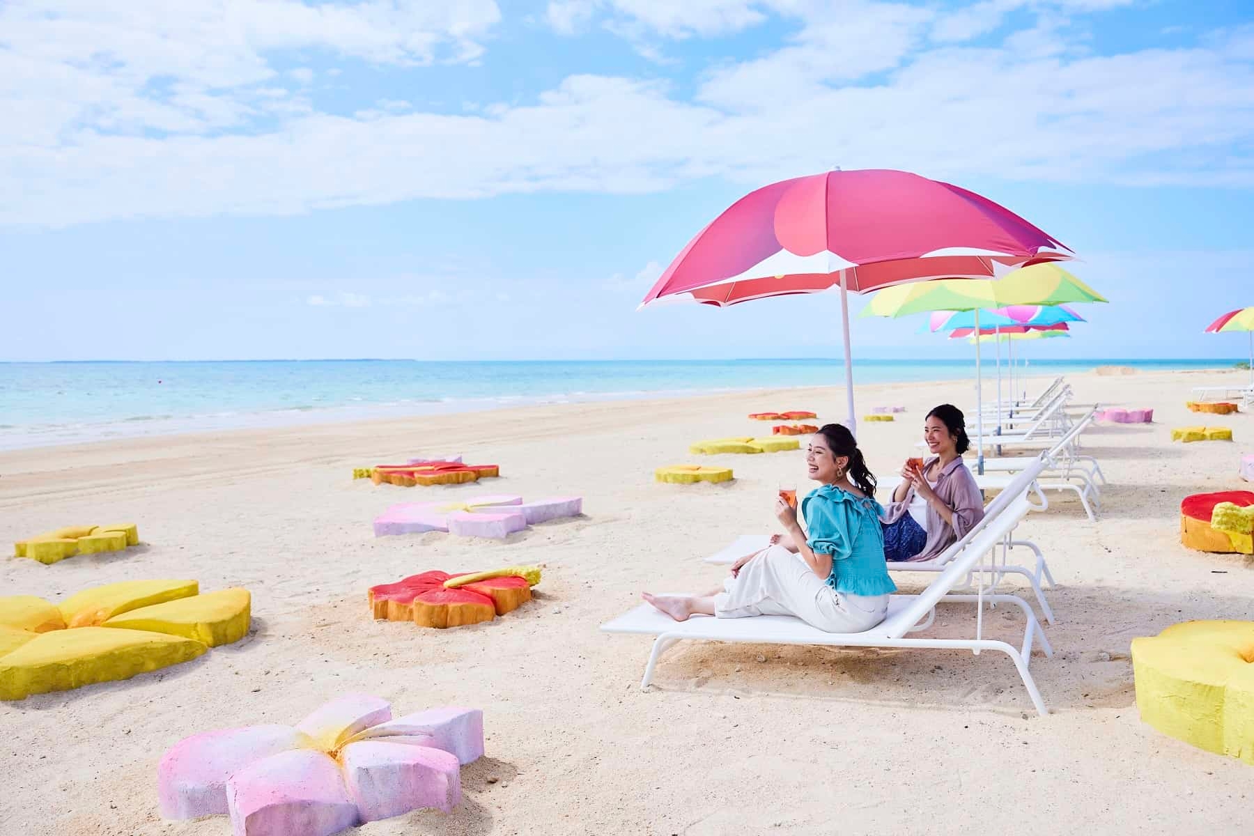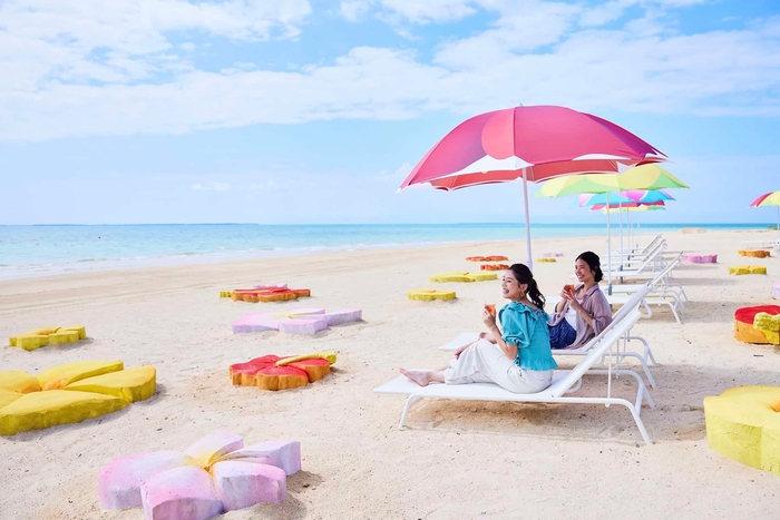 日本最南端の八重山諸島に位置する離島のビーチリゾート「星野リゾート リゾナーレ小浜島」は、2023年4月1日~5月7日の期間、ハイビスカスやプルメリアなど南国に咲く花のアートが白砂のビーチを彩る「ビーチの花咲くリゾナーレ」を開催します。本イベントは2020年にスタートし、今回で3回目の開催を迎えるイベントです。今回は、白砂のビーチにハイビスカスやプルメリアなど、南国らしいお花のパラソルや花のアートが登場します。またプールサイドでは、フラワーフットアイスバスがあり、足を浸しながら白砂のビーチと色鮮やかな花のアートのコントラストを楽しむことができます。会場に隣接する「BOOKS&CAFE」では、色とりどりのフレーバードリンクを用意。見た目も味わいも春らしいフレーバードリンクを片手に非日常の時間を過ごすことができるイベントです。