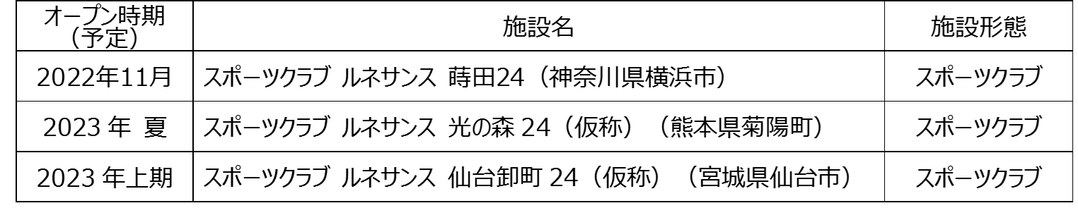 本施設は、トレーニングジム・スタジオ・スイミングプール・インドアテニスコート・温浴施設等を付帯した大型総合施設を予定しており、当社がこれまで培ってきたノウハウと最新の設備を導入することで地域の皆様の多様なニーズにお応えし、末永くご支持いただける施設を目指すとともに、地域コミュニティの活性化に貢献いたします。