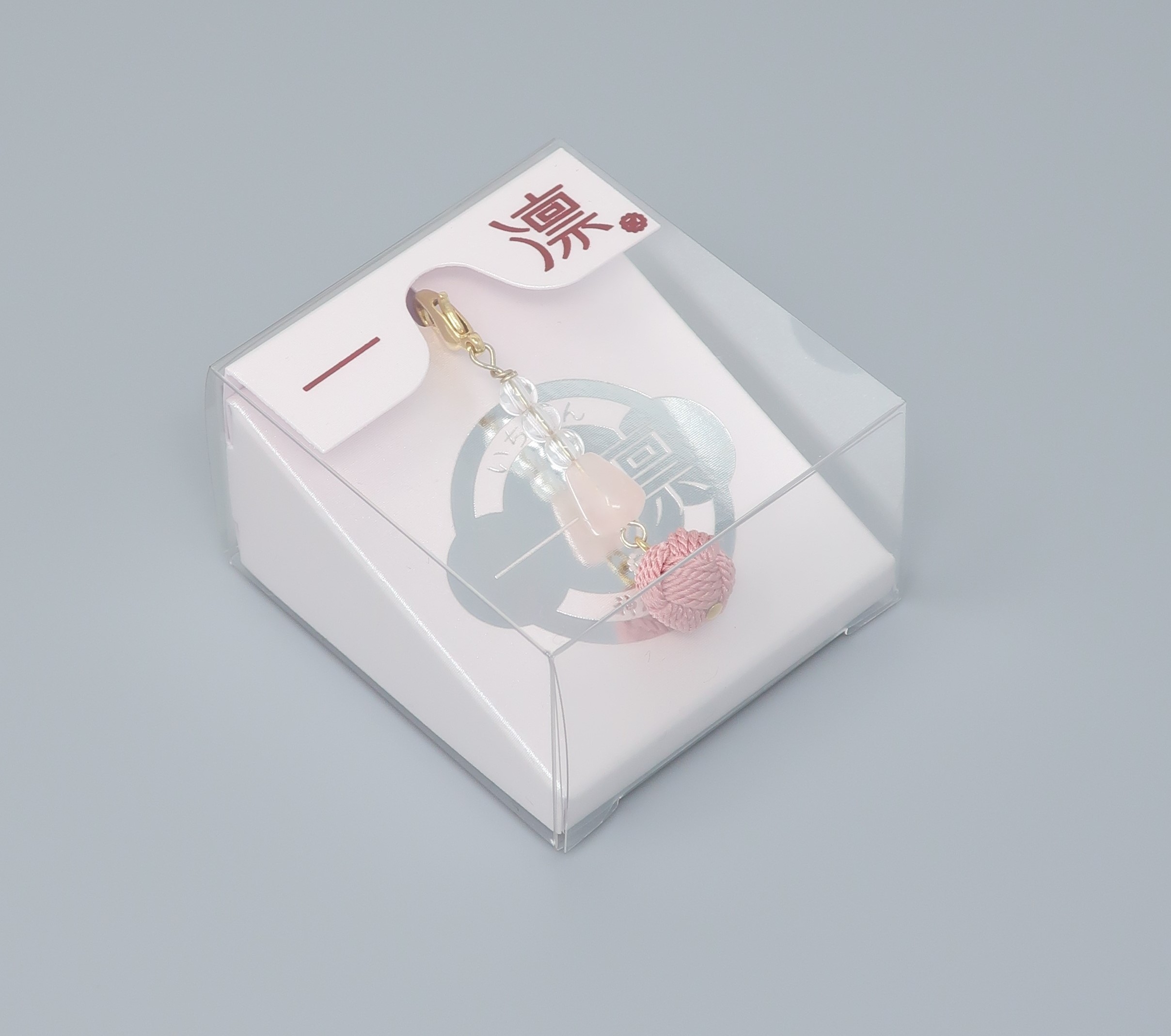 天然石と水晶を使用した数珠の房の形をしたチャームは、マスクチャームとしてだけでなくお守りとしてもお使いいただけ、小型のパッケージでギフトにも最適です。