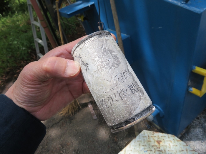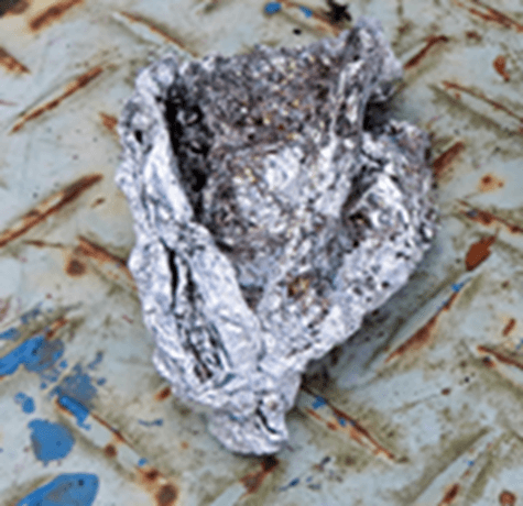 1回目の試験後の消滅確認をした時に、空き缶、アルミ箔が見つかりました。ペットボトルの袋の中に混じっていたものと思われます。その状況を見ることで、ZEROSONIC処理が燃焼でないことが確認できました。