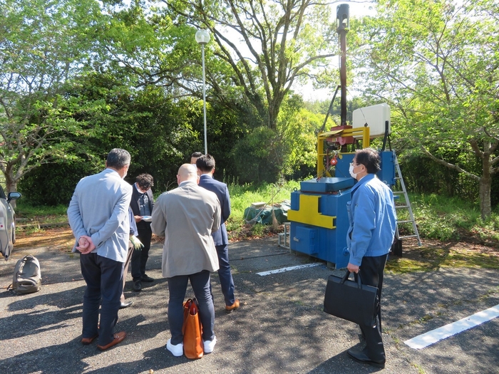 販売スタート時に用意していた処理装置はすべて販売したので、今回は試験装置での見学でした。実証試験をしている熊本の工場で2021年4月5日から15日の間に2回開催し、参加企業は10社近くになりました。