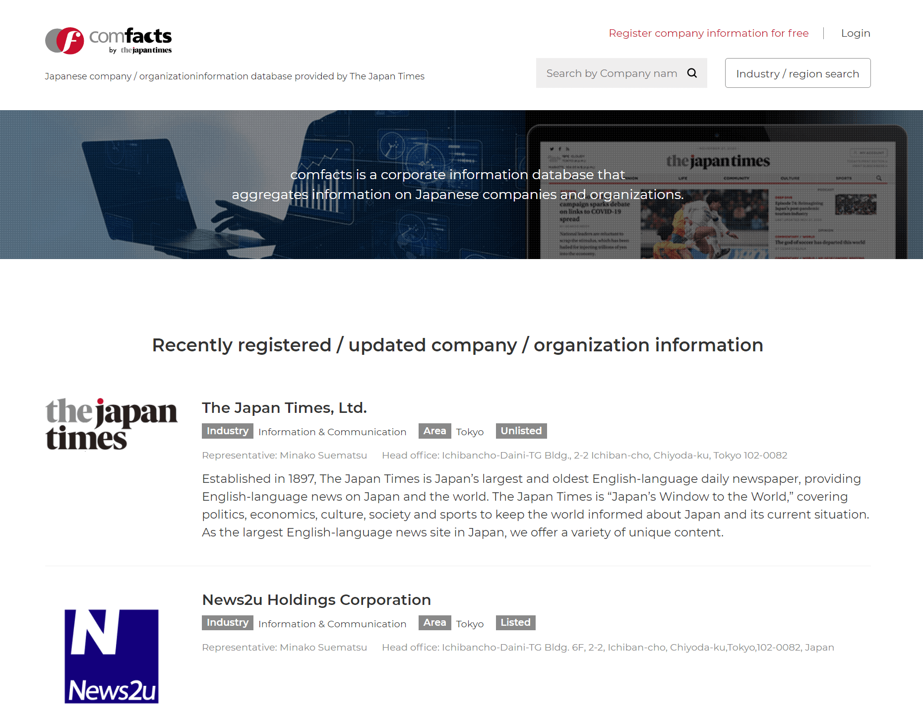 株式会社ジャパンタイムズキューブ(代表取締役:末松弥奈子)は、英文企業・団体情報と英文リリースを掲載することができる英文情報発信プラットフォーム「comfacts」を2021年2月1日に提供開始します。