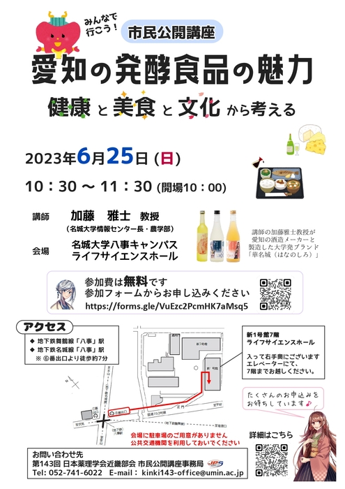 市民公開講座「愛知の発酵食品の魅力:健康と美食と文化から考える」(第 143 回日本薬理学会近畿部会)