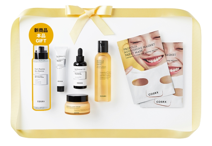 COSRXの人気商品だけでなく、9月1日に発売開始予定の「RXザ・6ペプチド スキンブースター セラム」がおまけで付いてくるお得なセット構成となっております。